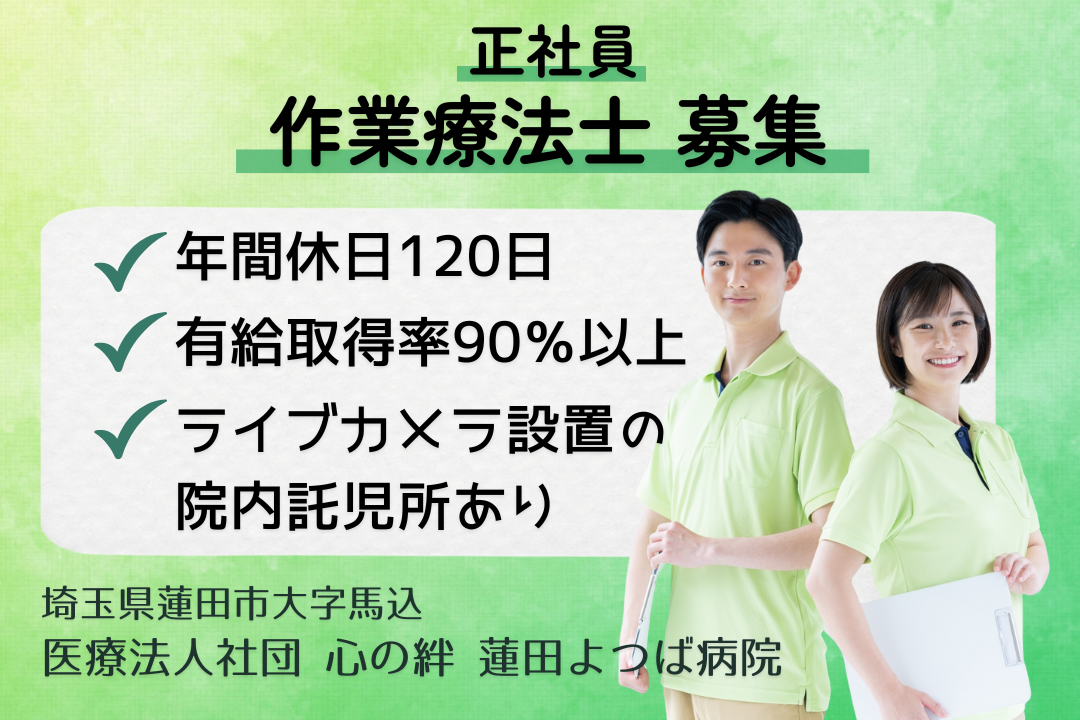 昇給年1回(4月) 賞与年2回(7月・12月) 交通費支給(規定あり) 社会保険完備 マイカー通勤OK(駐車場代無料、ガソリン代支給) 送迎あり(蓮田駅から無料送迎車あり) 退職金制度(勤続3年以上) 制服貸与 資格取得支援制度あり 学研メディカルサポート 外部研修・内部研修あり 職員食堂あり(1食150円~) 定年年齢70歳 \院内託児所を完備しています!/ 費用:1日800円~1200円 時間:8:00~18:00 預かり年齢:2カ月~未就学児 規模:保育士5名、園児15名 設備:ライブカメラ設置 |