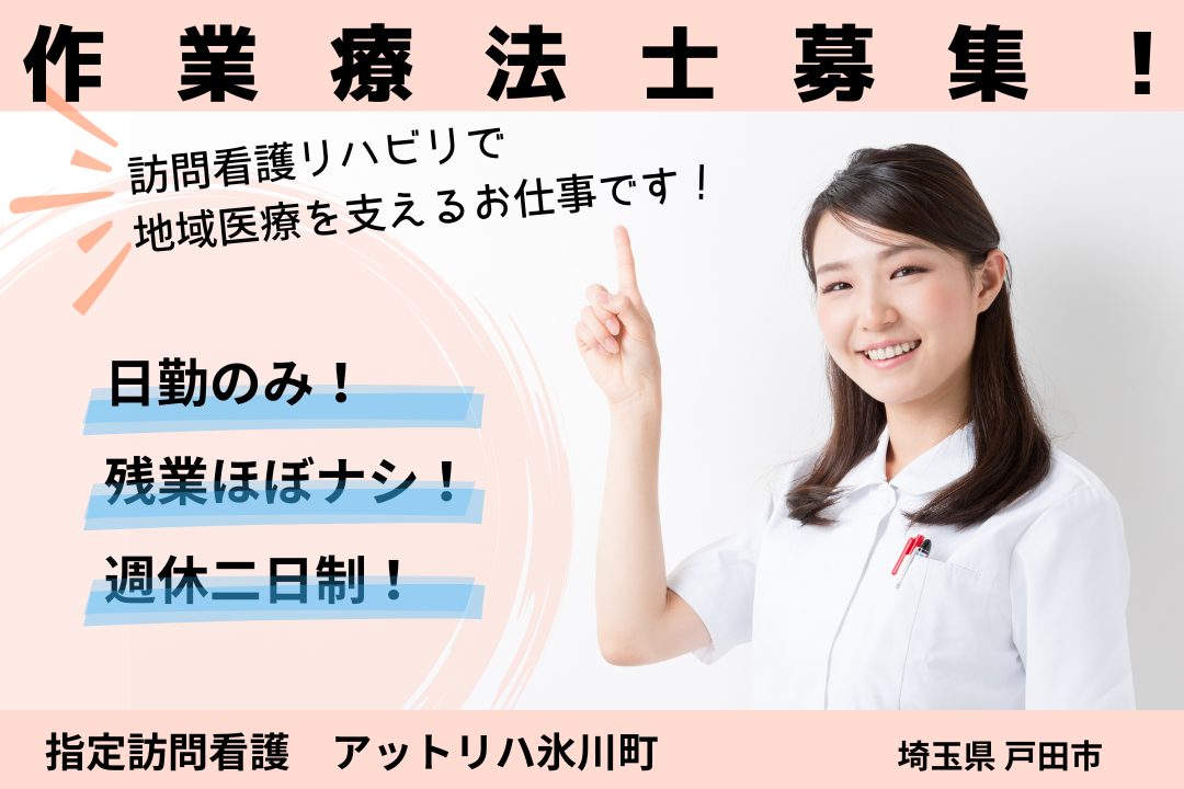 ˚✧₊⁎ ⁎⁺˳✧༚˚✧₊⁎ ⁎⁺˳✧༚˚✧₊⁎ ⁎⁺˳✧༚˚✧₊⁎ ⁎⁺˳˚✧₊⁎ ⁎⁺˳ \訪問看護ステーションでリハビリのお仕事/ 完全週休二日で作業療法士! ˚✧₊⁎ ⁎⁺˳✧༚˚✧₊⁎ ⁎⁺˳✧༚˚✧₊⁎ ⁎⁺˳✧༚˚✧₊⁎ ⁎⁺˳˚✧₊⁎ ⁎⁺˳ *「指定訪問看護 アットリハ氷川町」* より良いチーム医療を提供する環境が整った 地域最大規模の訪問看護ステーションです。 *【業務内容】* ★病状や身体機能の把握 ★生活動作の訓練 (食事、歩行、排泄、着替えなど) ★自宅でできるセルフケアの指導 (自主トレーニングなど) ★社会技能の改善 ★生活動作の練習 |