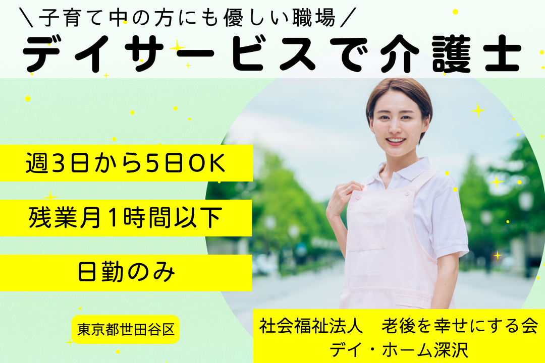 日勤のみで急なお休みにも柔軟対応できるデイサービスの介護職 R15847-ca-sy-np-kyo