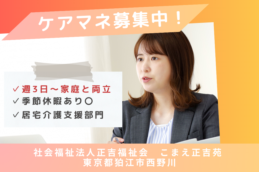 フルタイム昇給あり駅から徒歩圏内賞与あり経験者歓迎新卒・第二新卒歓迎施設見学OK月給27万円以上可能子育て中の方歓迎土日休み受動喫煙対策社会保険完備幅広い世代の方歓迎日曜休み研修制度ありブランクOK完全週休2日制U・Iターン歓迎4週8休以上産休・育休制度実績あり長期休暇取得可能残業月10時間以下