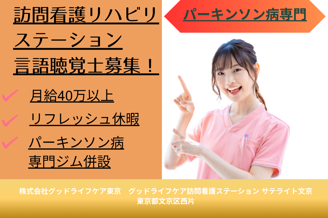 お休みが充実しているパーキンソン病専門の訪問看護リハビリステーションで働く言語聴覚士 R7788-et-st-nf-nor
